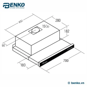 Máy hút mùi Prato PT-330H1 thuộc dòng Slim (mỏng) lắp âm tủ với kích thước 700mm (70cm) tiêu chuẩn.