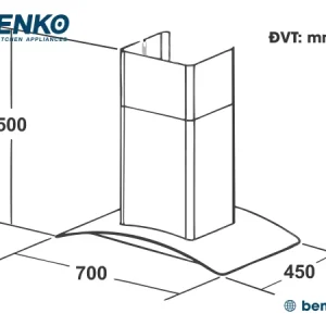 Máy hút mùi Prato PT-332H2 với kiểu dáng kính cong gắn áp tường. Kích thước tiêu chuẩn 700mm (70cm). Bảng điều khiển phím bấm cơ 3 tốc độ hút mùi. Công suất hút tối đa lên đến 1200m3/h.