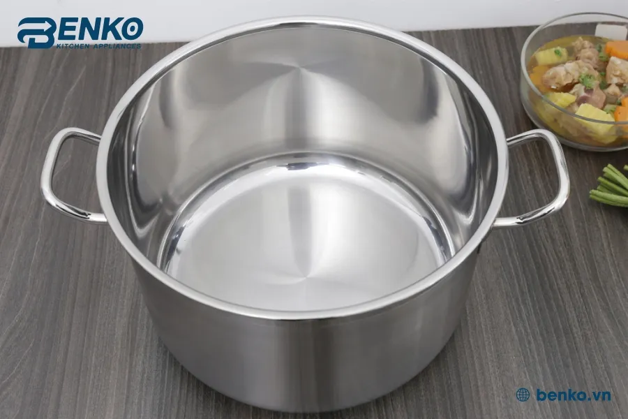 Lòng nồi sáng bóng không tương tác với thực phẩm nấu nướng bên trong nên không gây ra độc hại, đảm bảo an toàn gần như tuyệt đối người sử dụng.